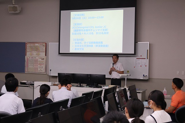 国際交流担当からは明日実施される「タイ国・チェンマイ『JCIジュニア』との交流授業」についての説明がありました。事前にタイ国の食文化や現地学校の授業についての説明があり、生徒は明日の授業に向けての心構えがしっかりとできました。