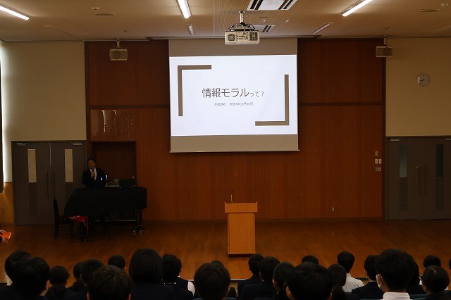 まず、教頭先生から『情報モラル』についてのお話をしていただきました。「人によって『何を』『嫌だ』と感じる感覚にはズレがあるので、その違いを理解したうえで、自分の言動の前に想像力を働かせることが大切!」という内容でした。このことをしっかりと理解し、みなさんが気持ちよく生活ができるよう気をつけましょう。