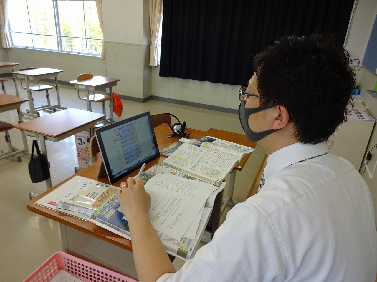 今、2年生の教室では社会の地理の授業がライブで行われています。