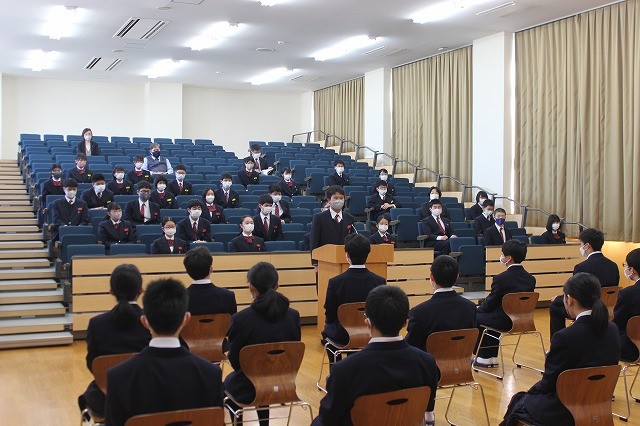 本日4月10日(月)セミナーホールにて、新入生と在校生の対面式を行いました。新入生は、緊張した表情で、2・3年生からの拍手を受けて入場してきましたが、校友会生徒による挨拶やクイズ等を通して、緊張は和らいでいきました。新入生を迎え入れ、全学年一丸となって、これからの皇學館中学校をより良い学校にしていけるよう期待しています。