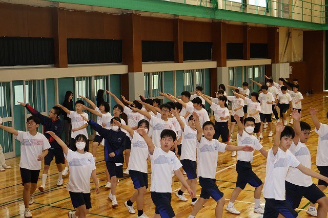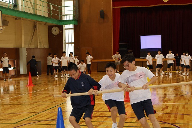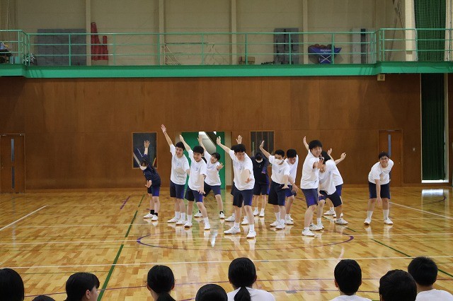 本日10月16日(木)、中間テスト(理科)終了後に、体育大会練習と全校集会を行いました。
