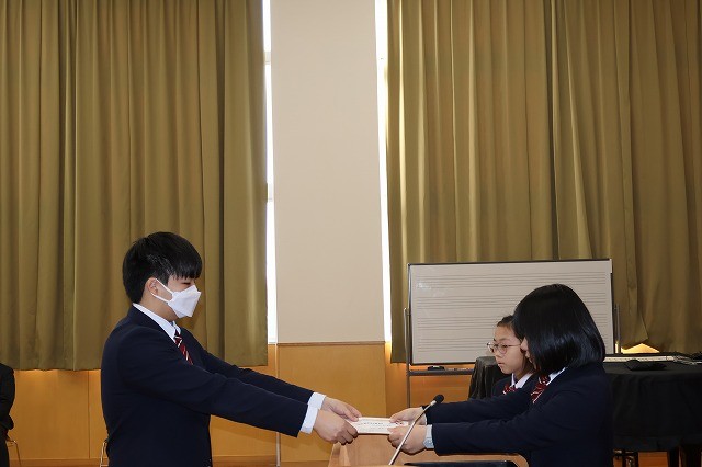 最後に校友会から、2月のKnis運動と年間優秀賞の表彰がありました。みんな一生懸命に取り組み、1年間を通して素晴らしい活動ができたと思います。